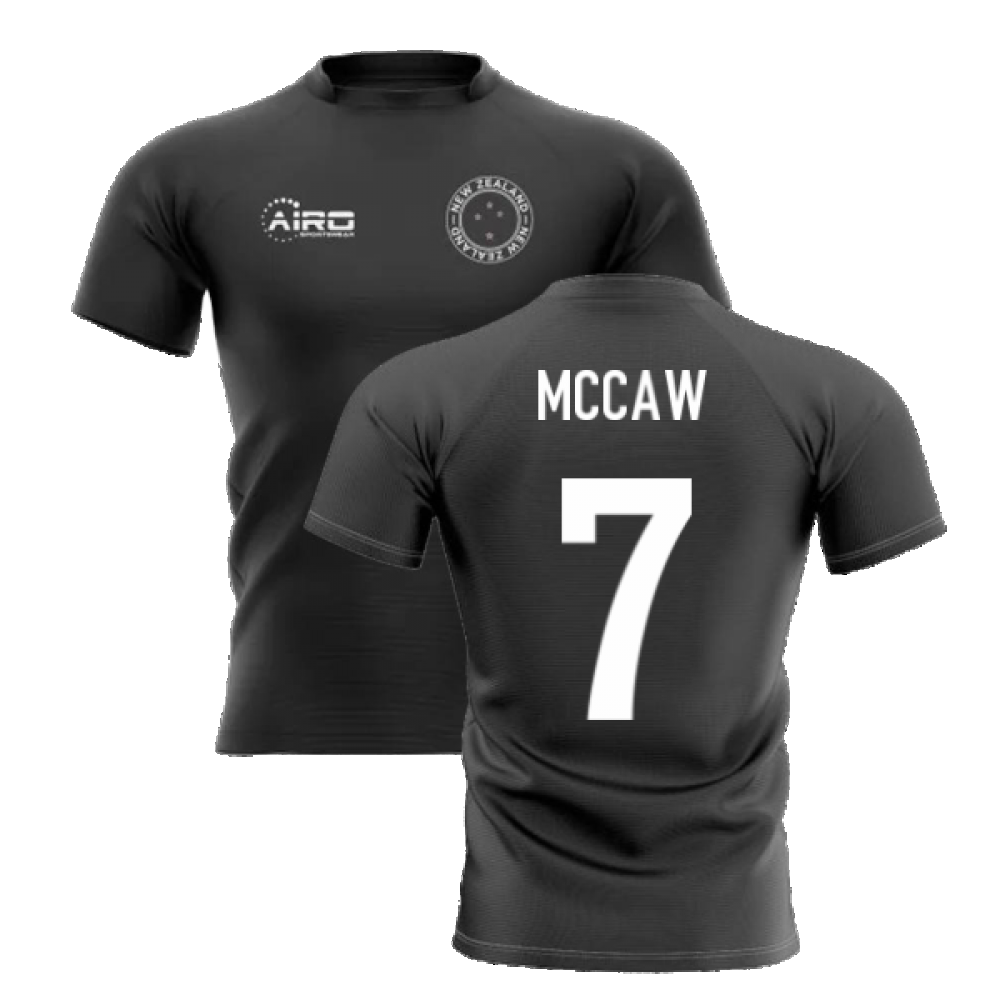 Richie McCaw football shirt.. This is the new New Zealand All Blacks Home concept rugby shirt for 2019-2020 which is manufactured by Airo and is available in adult sizes S, M, L, XL, XXL, XXXL, XXXXL, XXXXXL.
