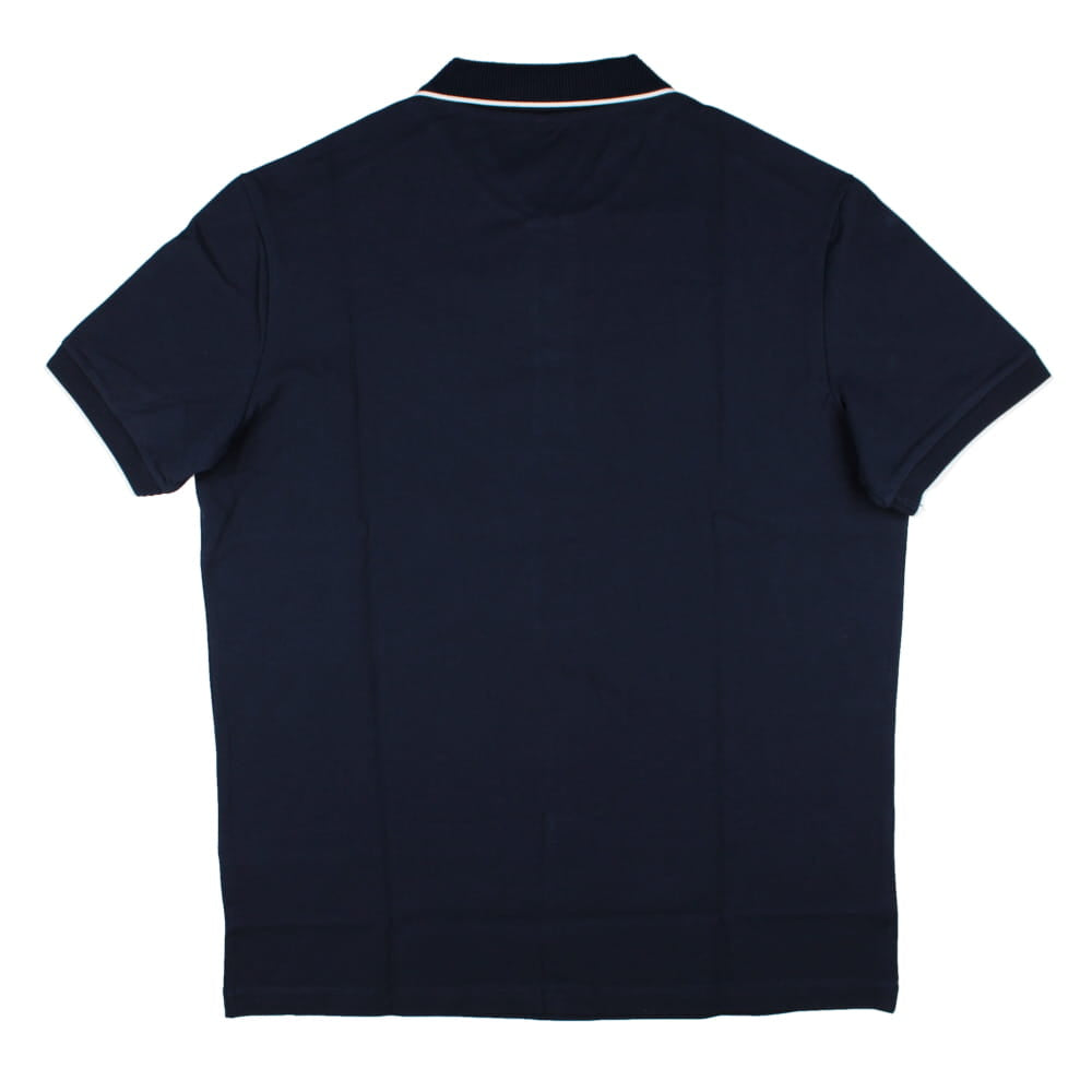 - Structured polo collar with distinctive white edge detail