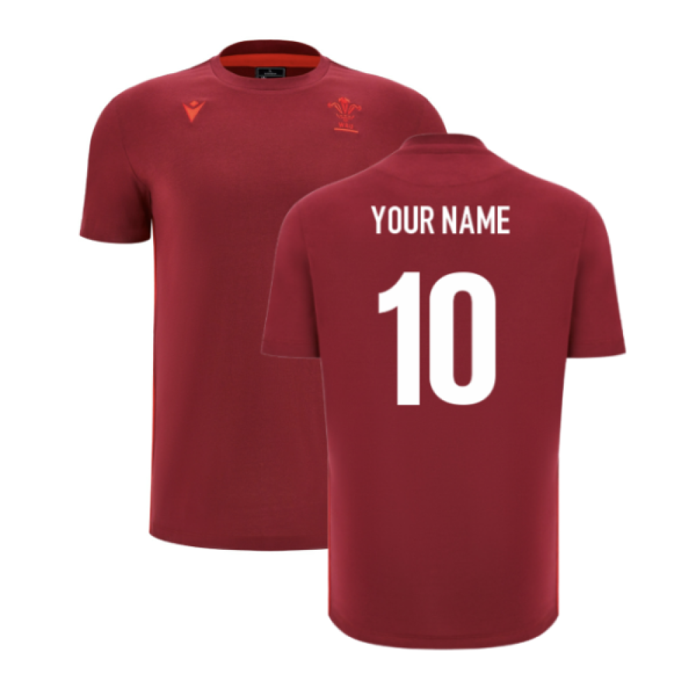 2025-2026 Wales WRU Rugby Travel Cotton Tee (Deep Red) (Your Name)